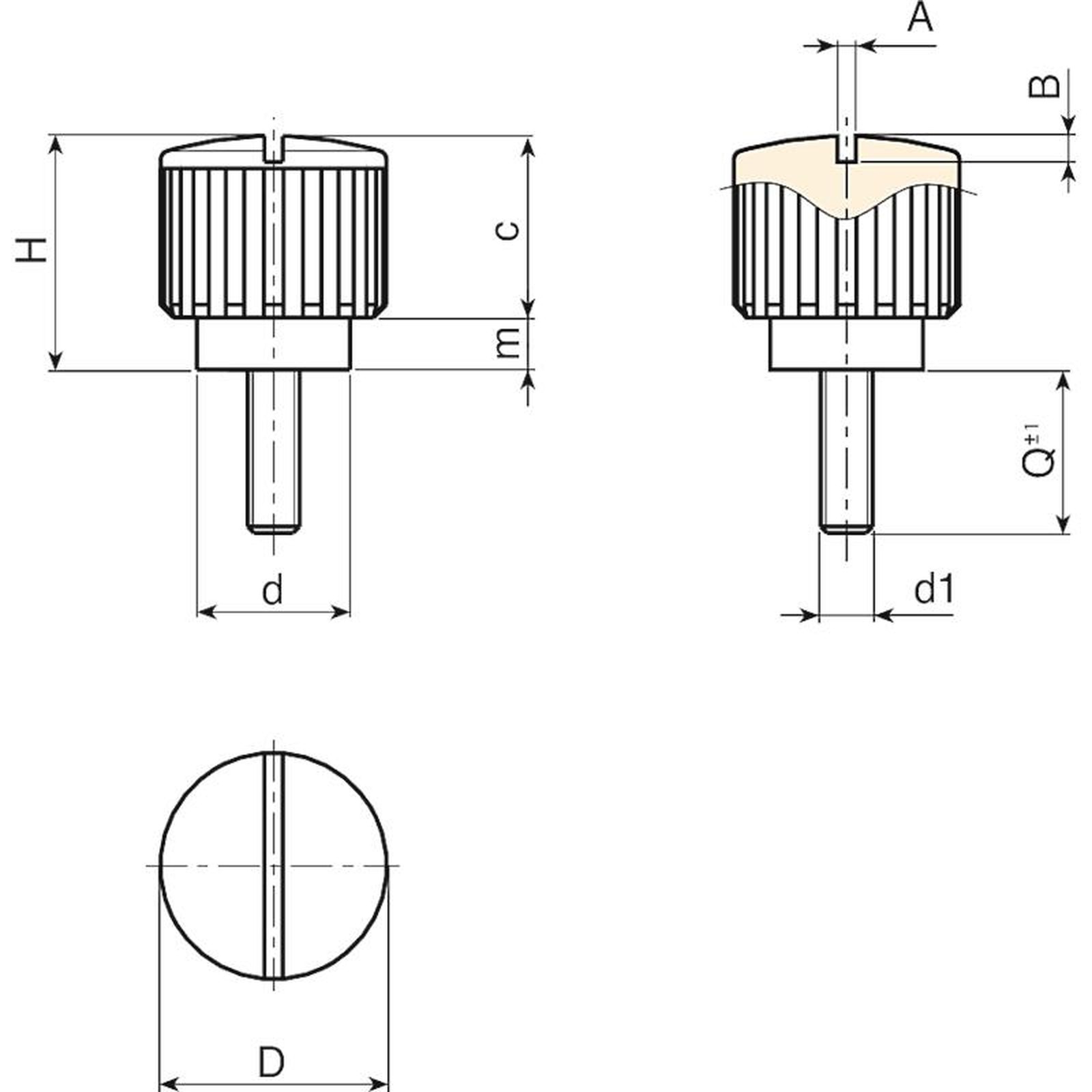 | Code | art. | D | H | d | m | c | A | B | LM | d1 6g | Q | Weight (g) |