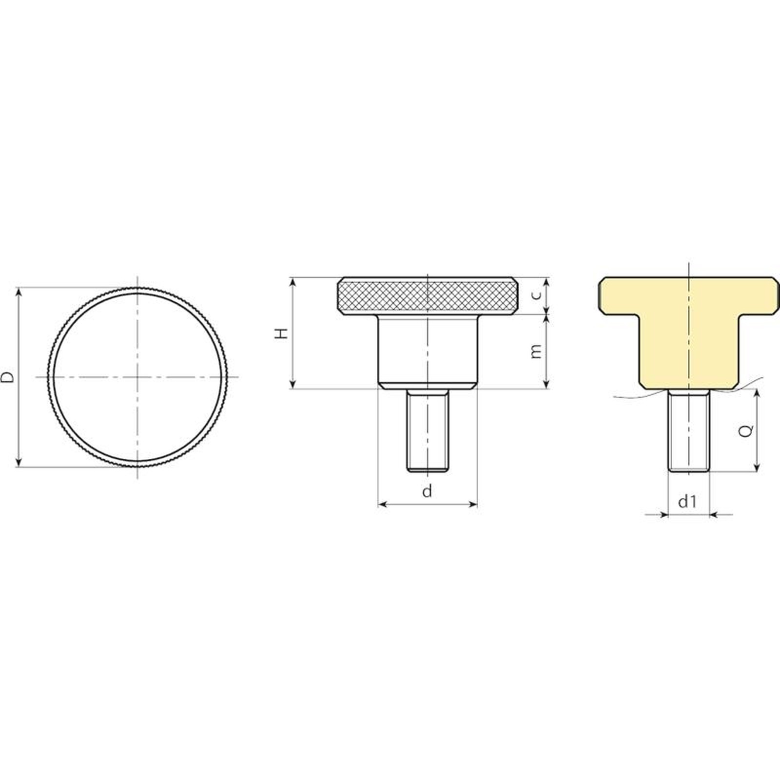 | Code | Art. | d | D | H | m | c | Q Max | d1 6g | Q | Weight (g) |