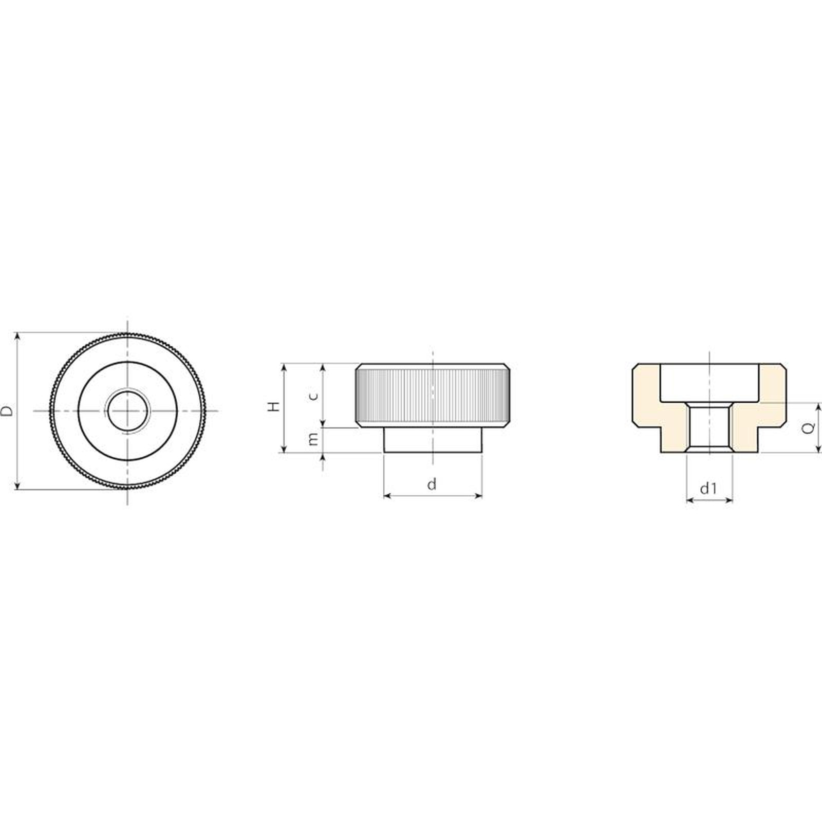 | Code | Art. | D | d | H | m | c | d1 6H | Q | Weight (g) |