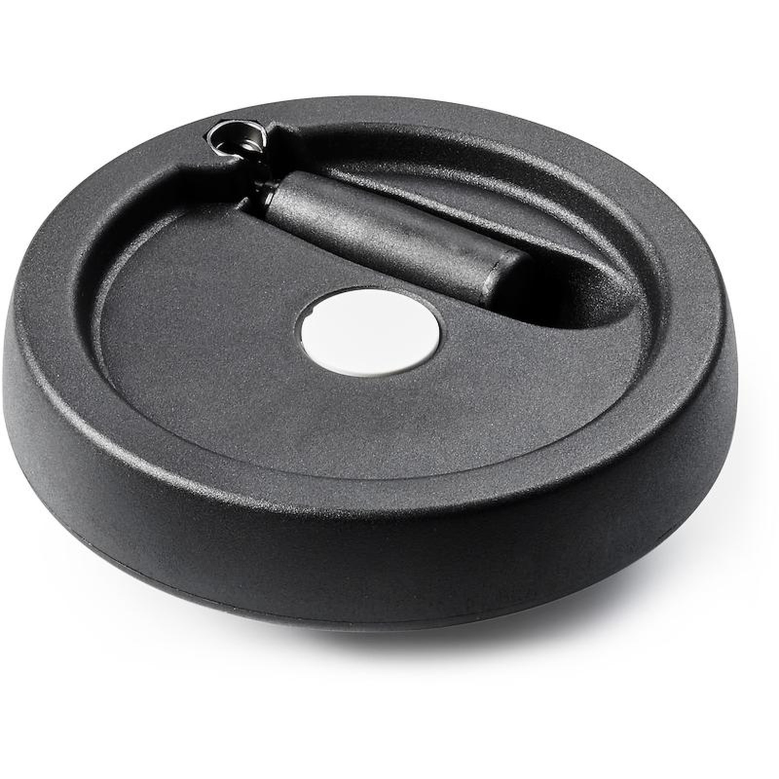 Revolving handle that folds into the handwheel, with hexagonal connection.