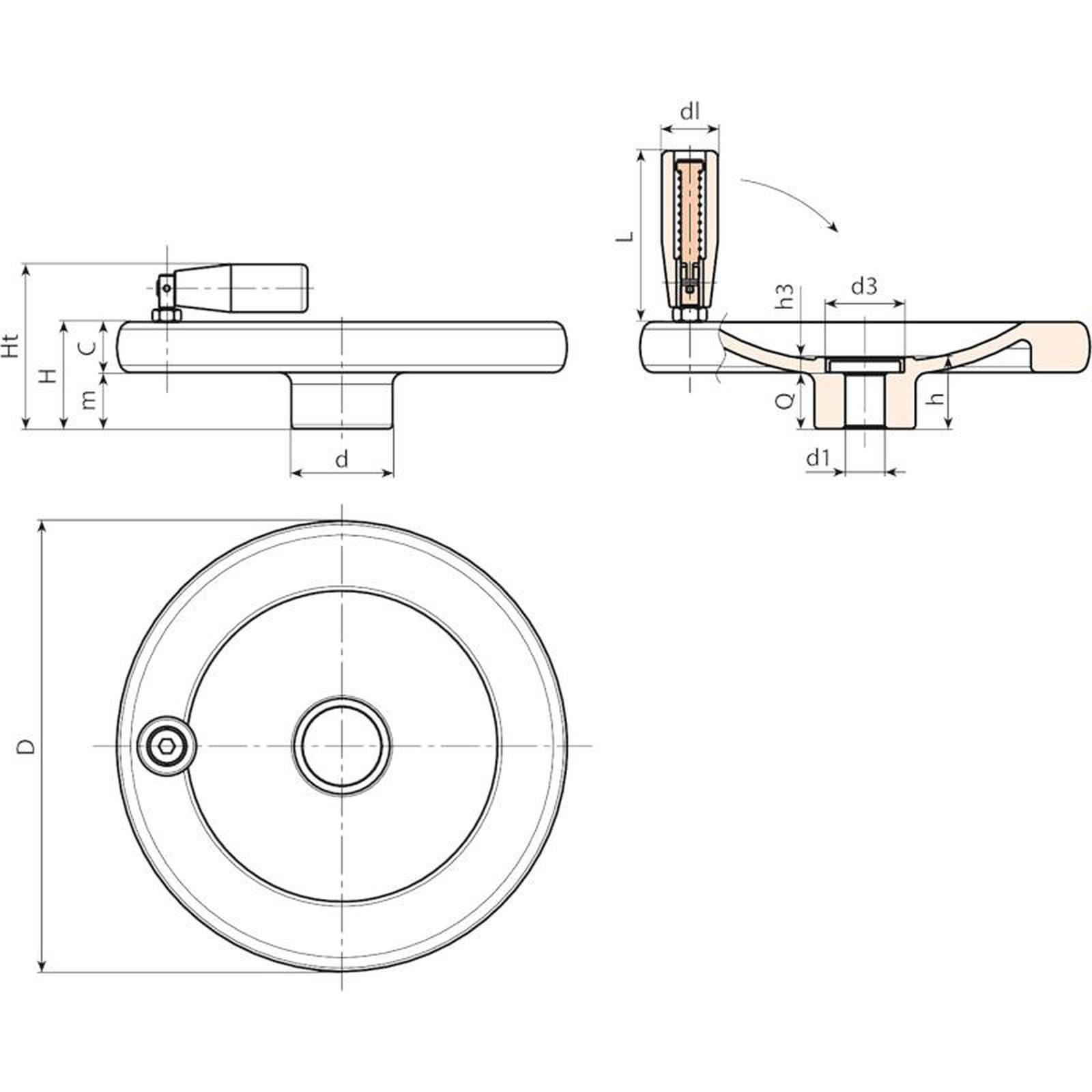 Upon request and for special quantities handwheels can be supplied on customer’s drawing with hole diameter d1.