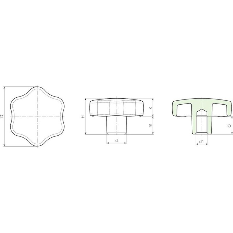 | Code | Art. | D | H | d | m | d1 6H | Q | Weight (g) |