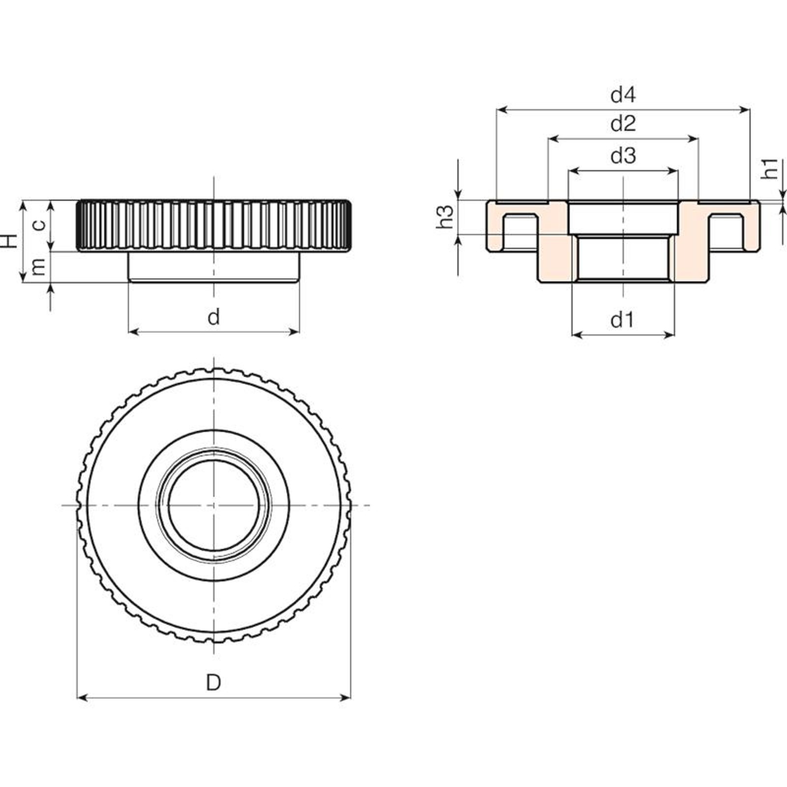 | Code | art. | D | H | d | c | m | h1 | h3 | d2 | d3 | d4 | d1 | Weight (g) |
