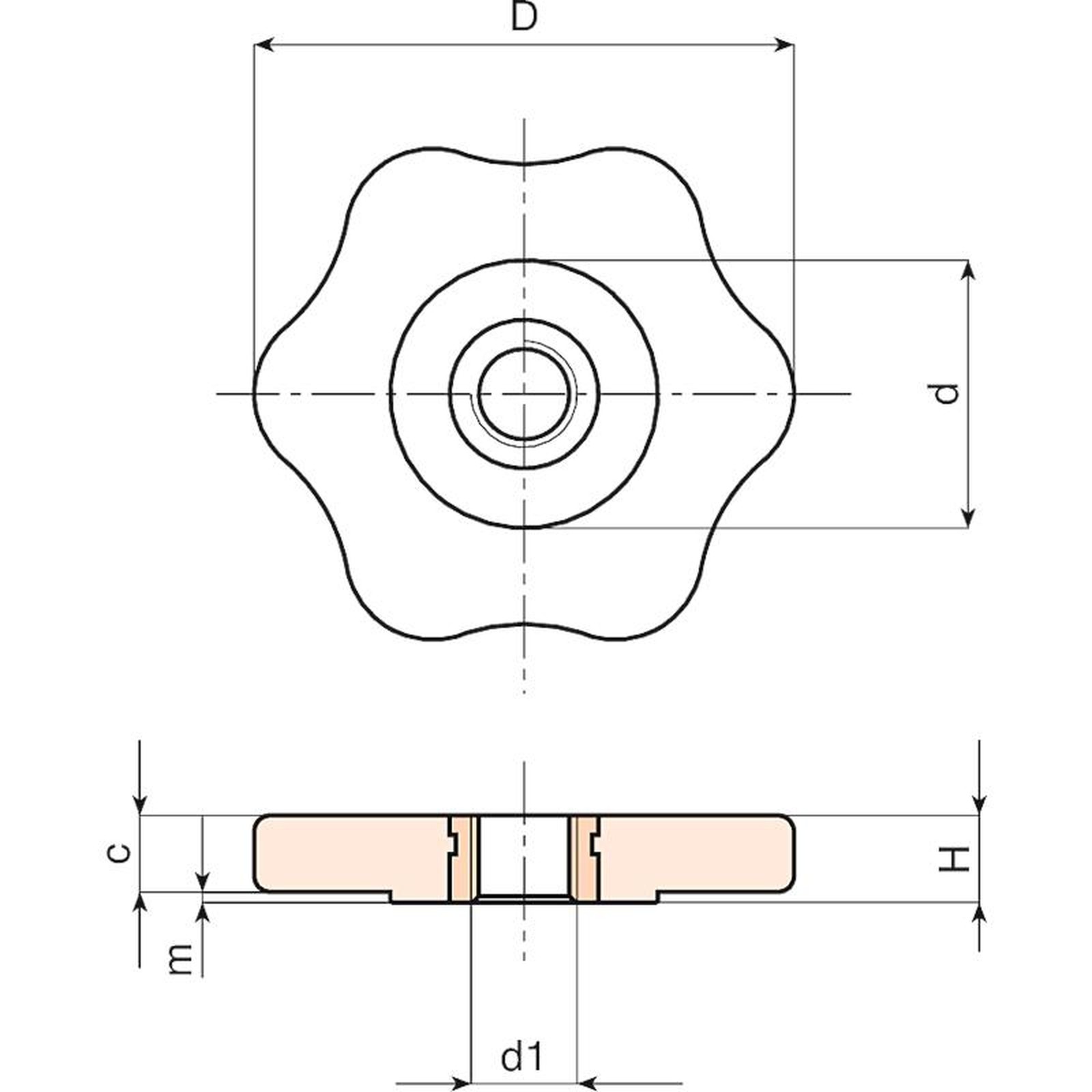 | Code | art. | D | H | d | c | m | d1 6H | Weight (g) |