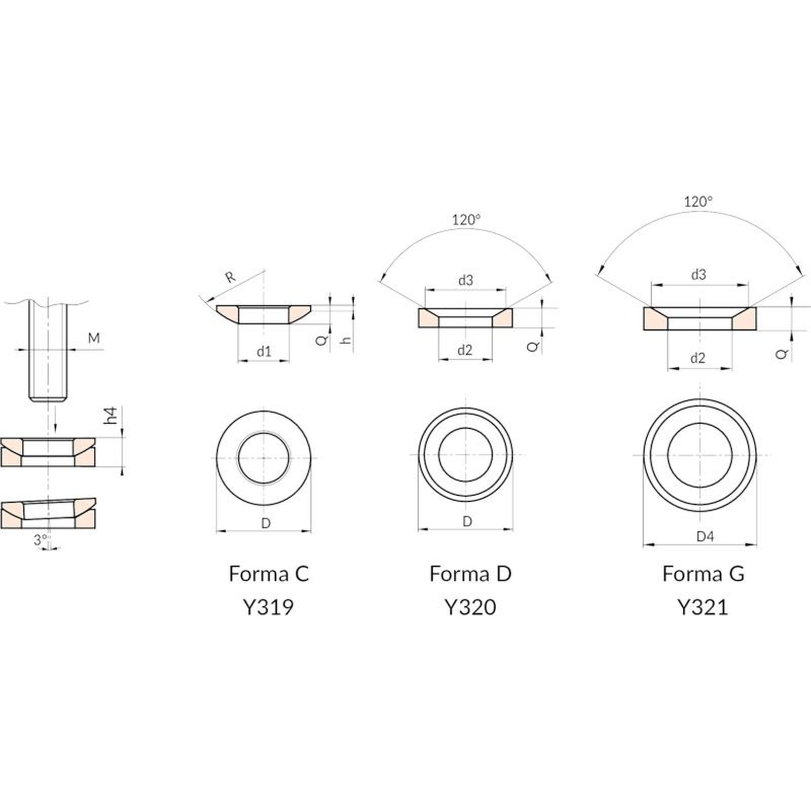 Attention: convex washer Y319 must be used with concave washer Y320 or Y321 (to be ordered separately).