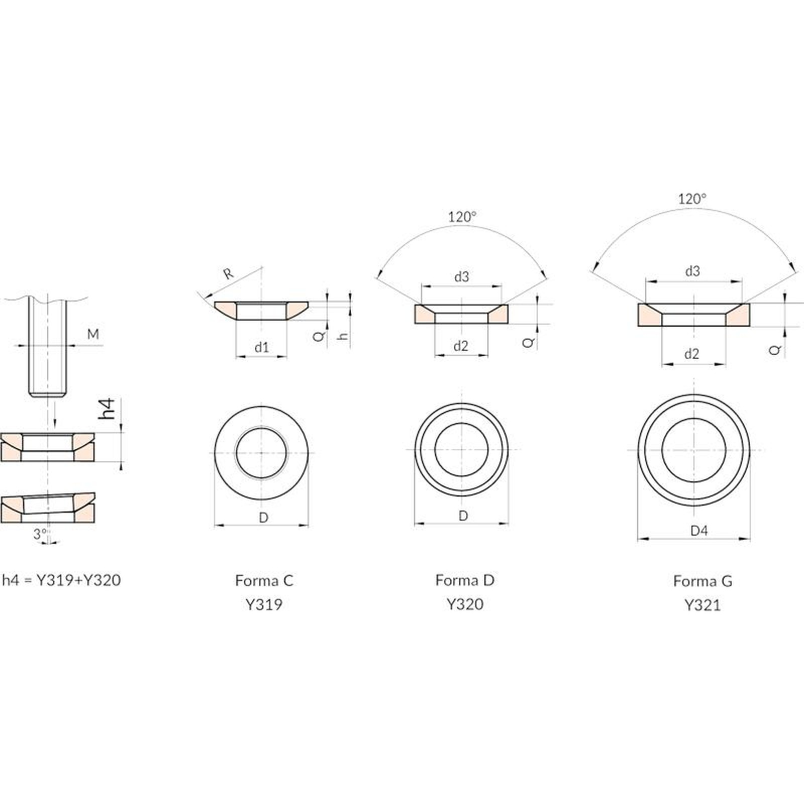 Attention: concave washer Y320 must be used with convex washer Y319 (to be ordered separately).