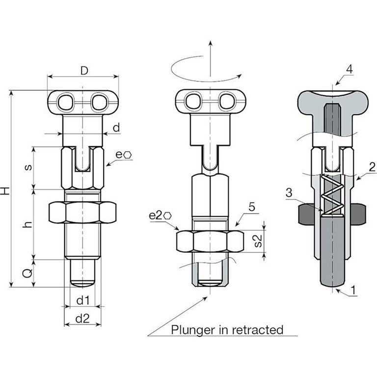 (2) Stainless steel (Aisi 303) locking indexing plunger body.