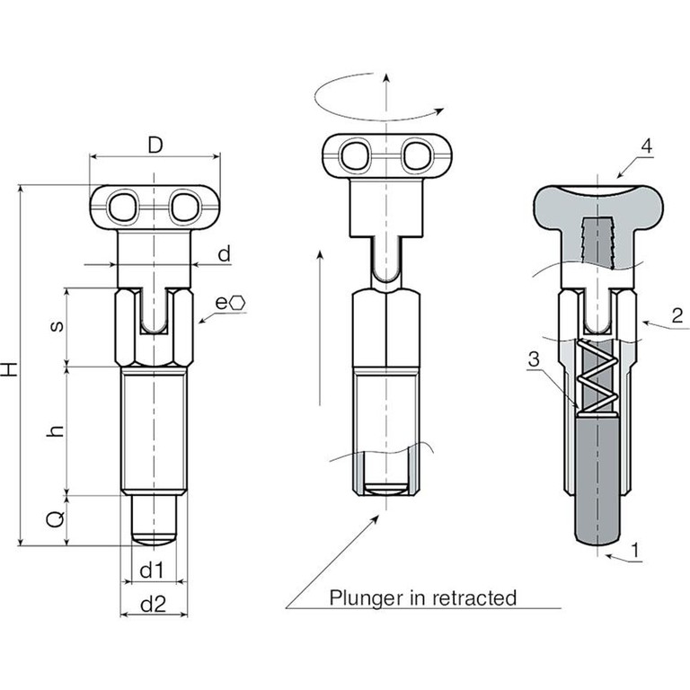(2) Stainless steel (Aisi 303) locking indexing plunger body.