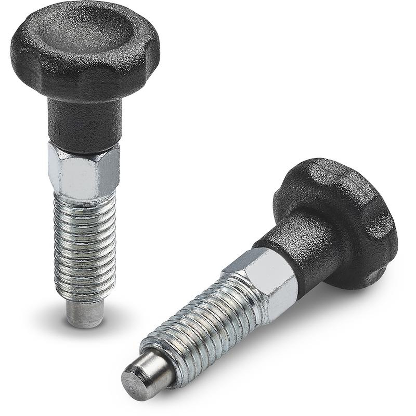 (4) Reinforced polyamide lobed knob. Cannot be disassembled. Resistant to oils and greases.