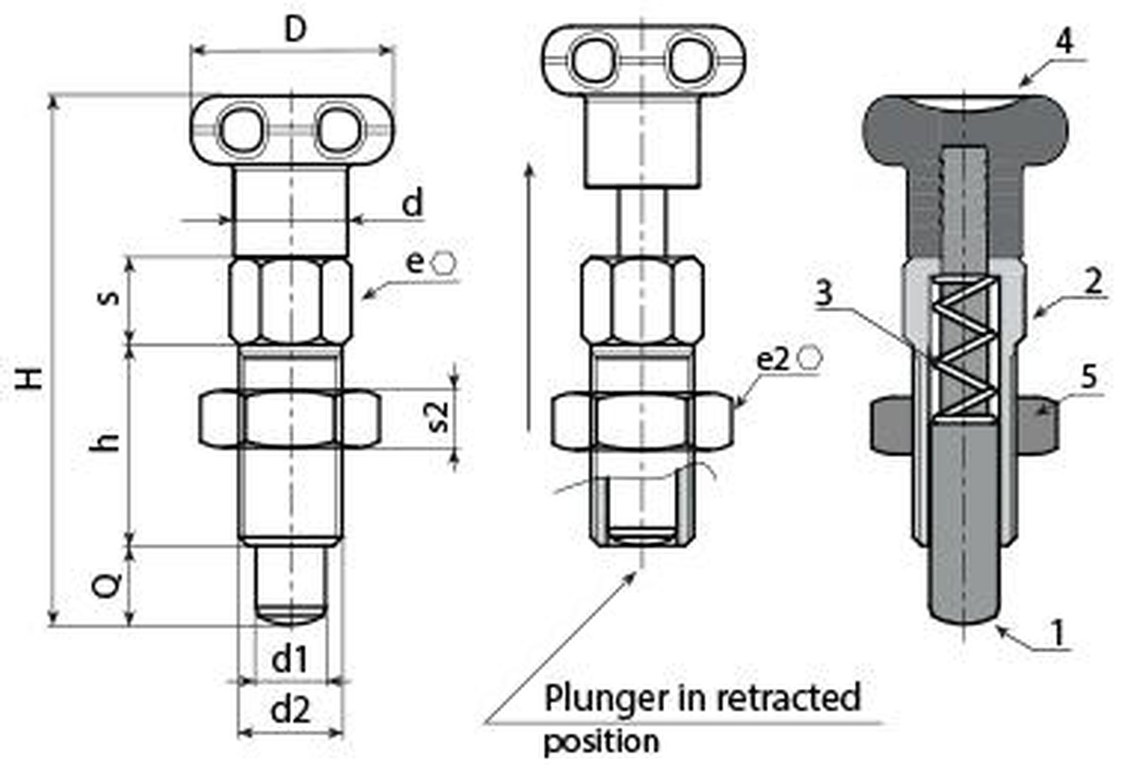 (2) Stainless steel (Aisi 303) indexing plunger body.