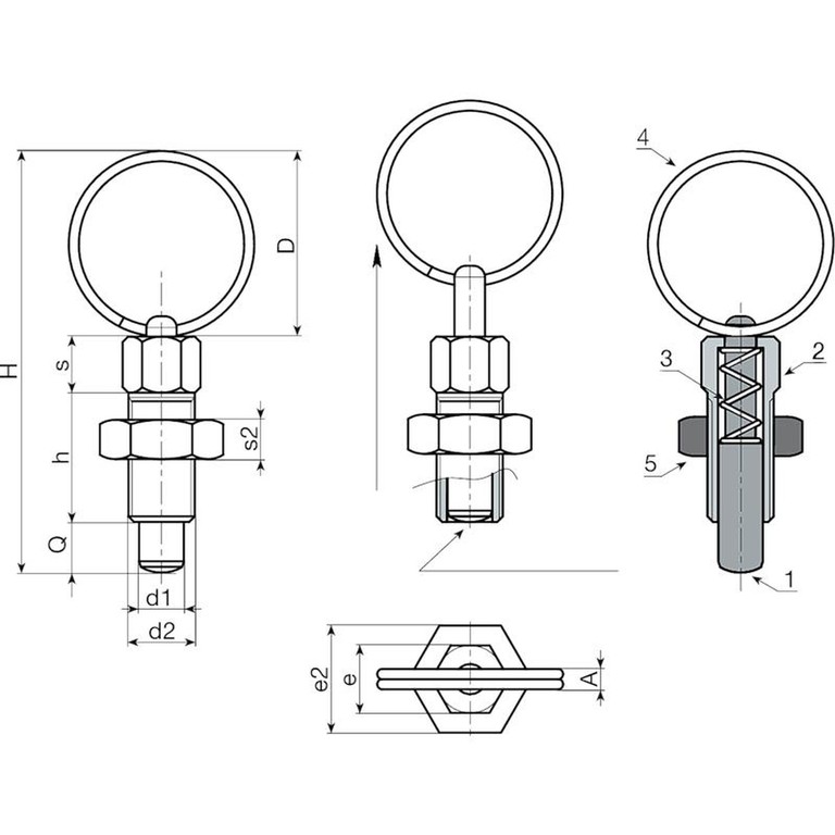 STEEL INDEXING PLUNGER WITH RING - WITH NUT