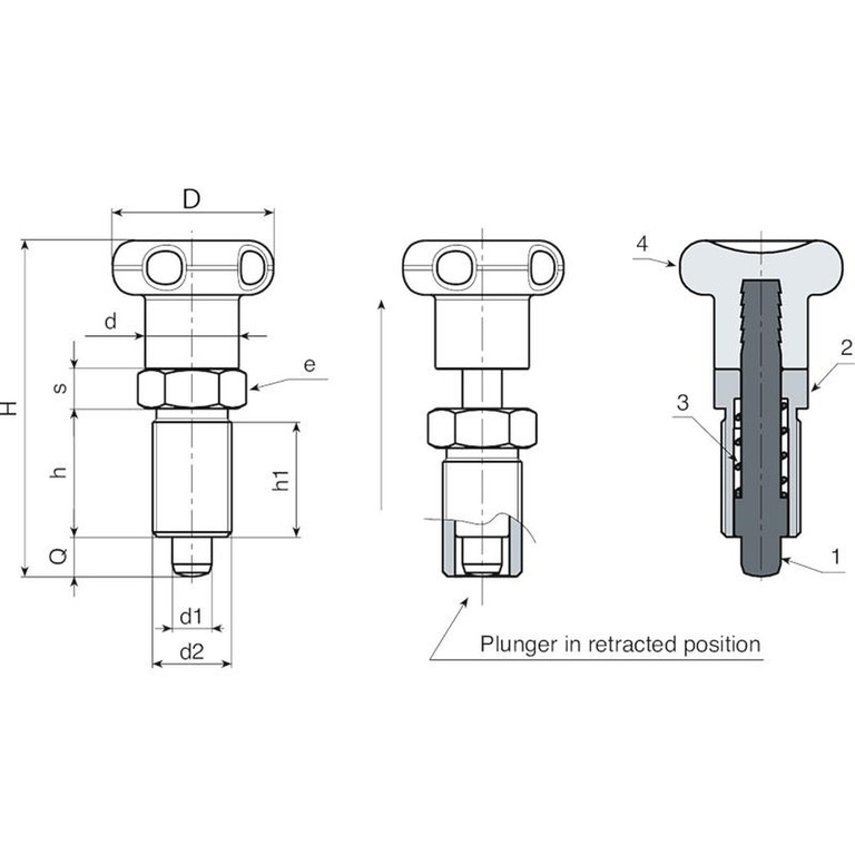 (4) Reinforced polyamide lobed knob. Cannot be disassembled. Resistant to oils and greases.