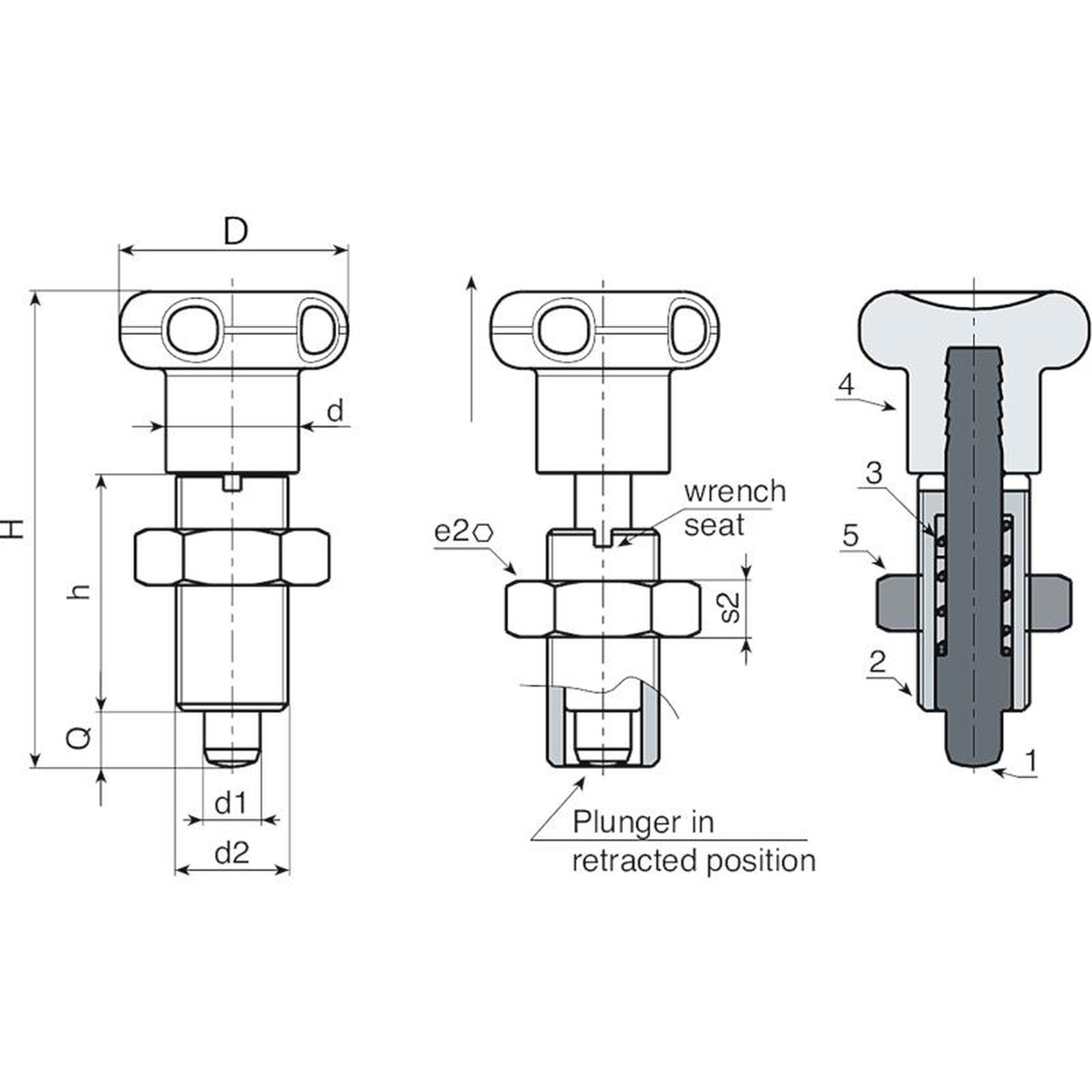 KNOB WITH STEEL INDEXING PLUNGER WITHOUT RING NUT - WITH LOCK NUT
