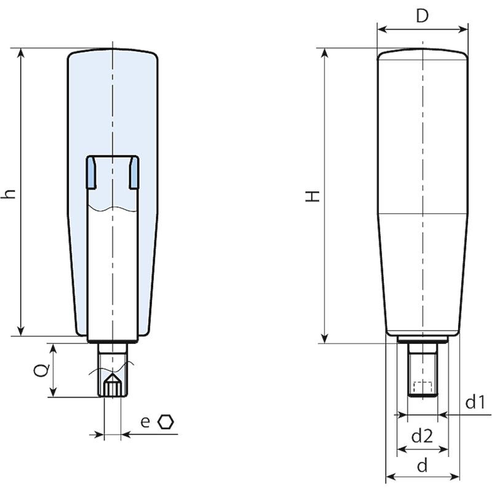 | Code | art. | H | h | D | d | d2 | e | d1 6g | Q | Weight (g) |