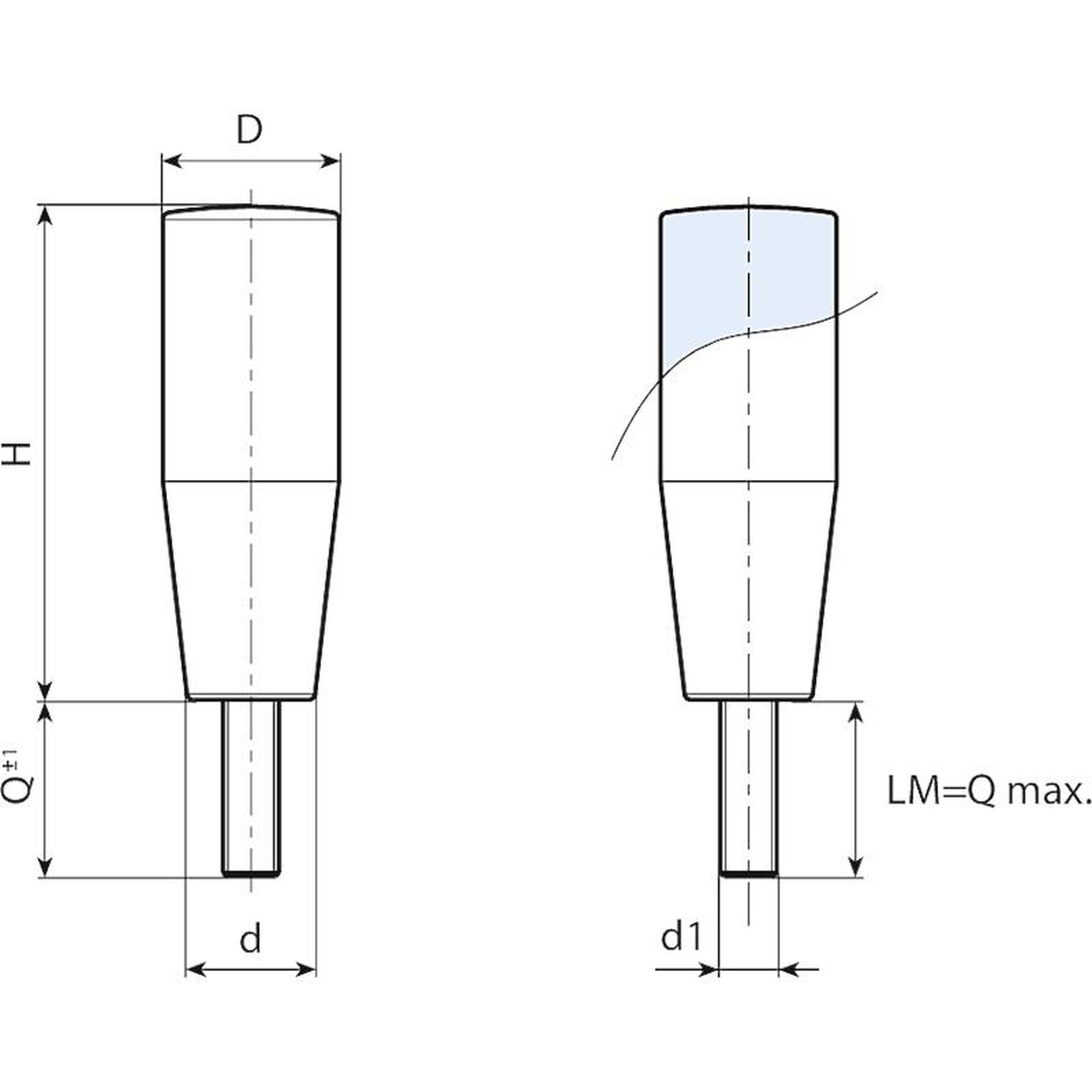 | Code | art. | H | D | d | LM | d1 6g | Q | Weight (g) |