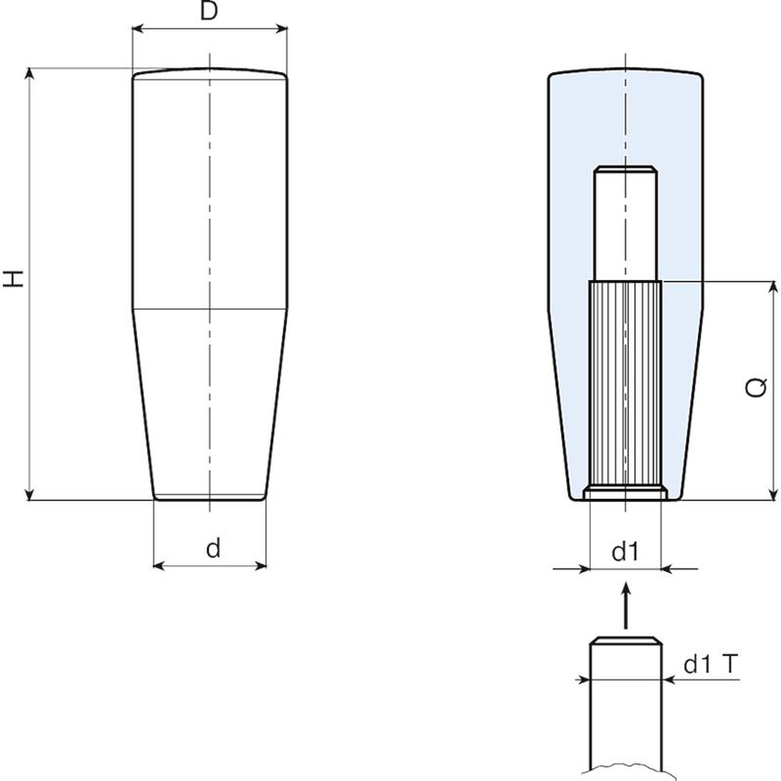 | Code | art. | H | D | d | d1 T | d1 | Q | Weight (g) |
