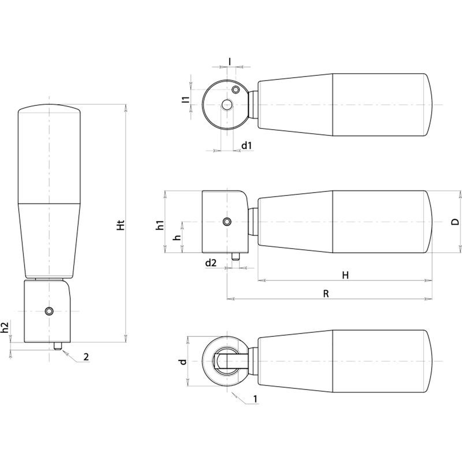| Code | art. | H | D | d | R | Ht | h | h1 | h2 | d1 | d2 | l | l1 | Weight (g) |