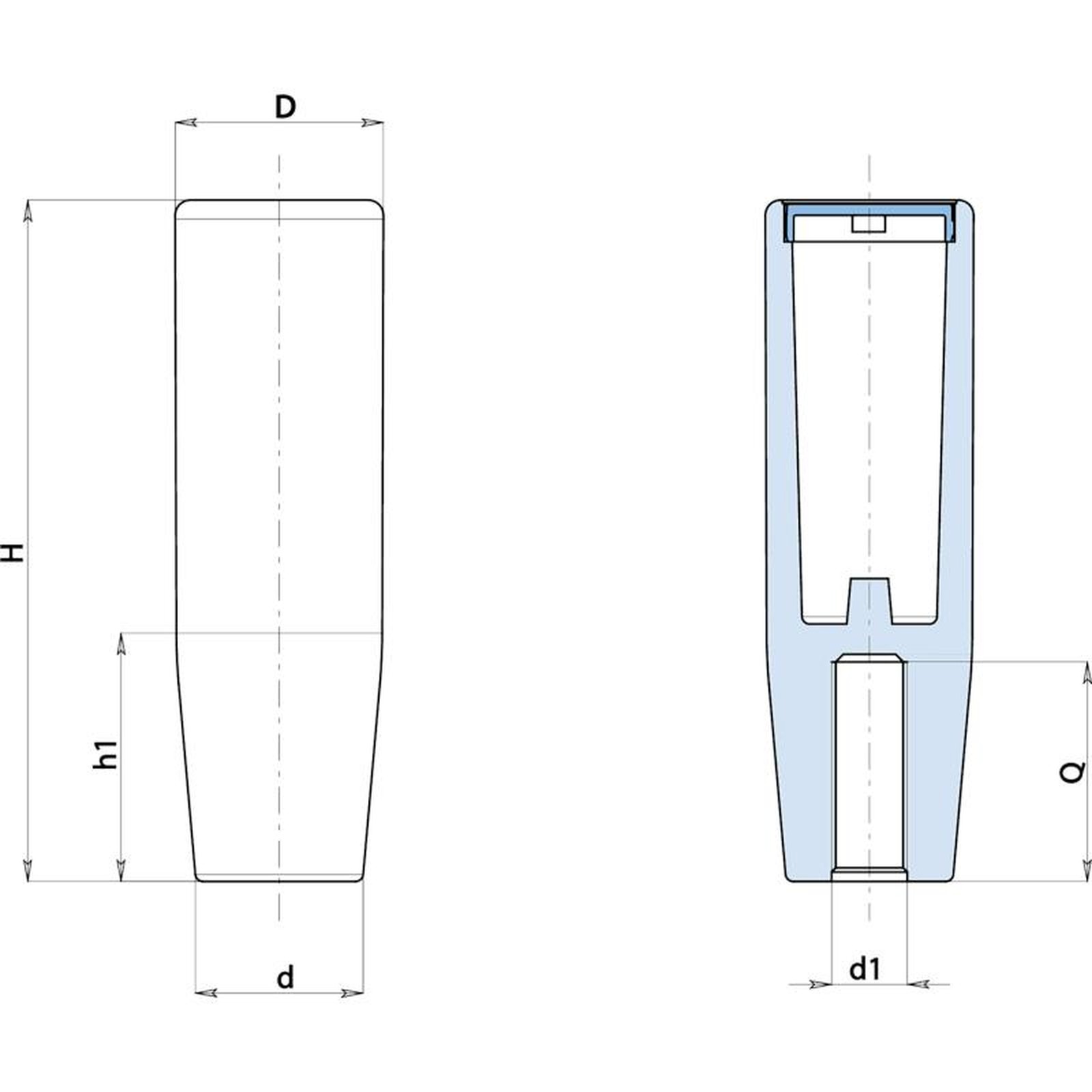 | Code | art. | H | D | d | h1 | d1 | Q | Weight (g) |