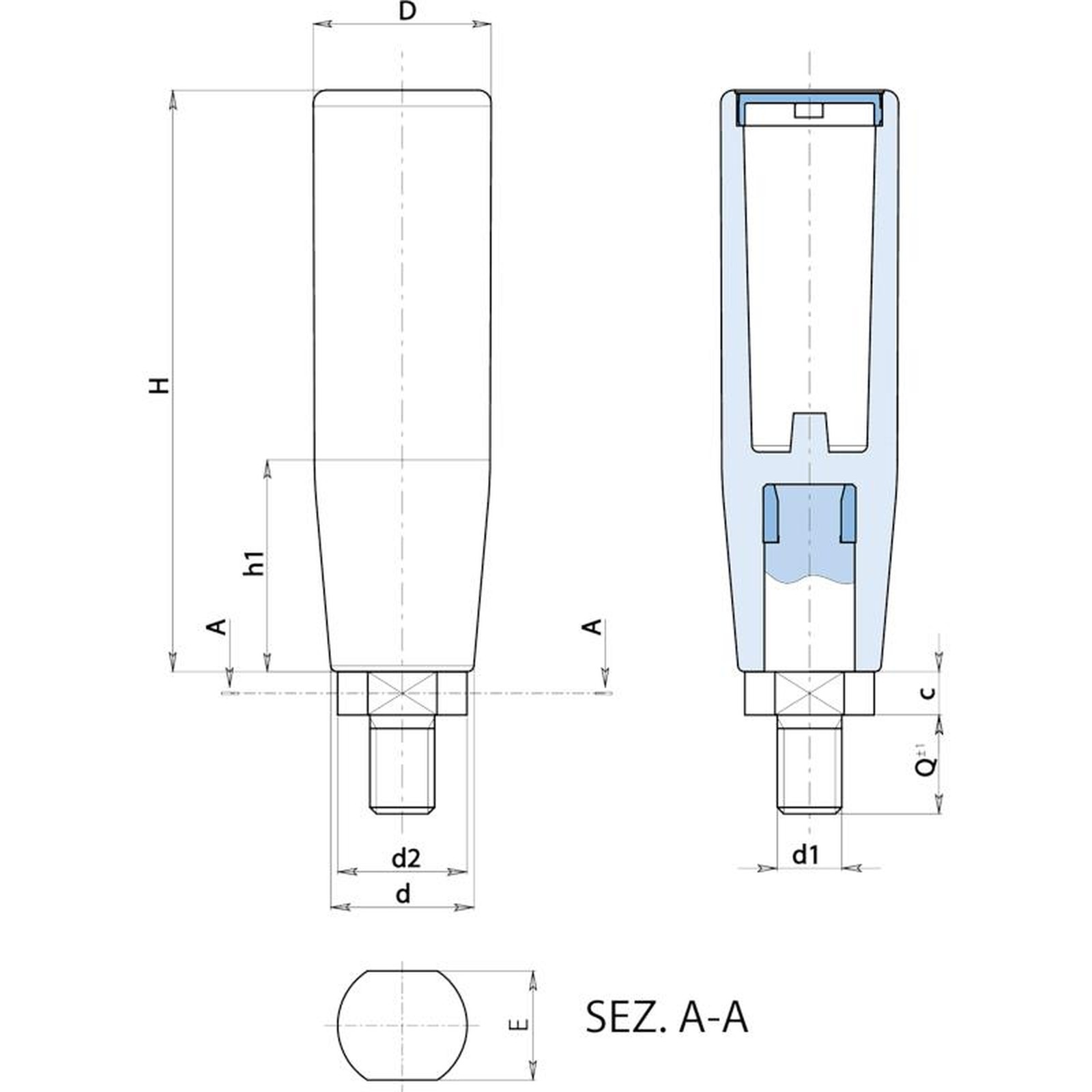 | Code | art. | H | D | d | d2 | E | c | h1 | d1 6g | Q | Weight (g) |