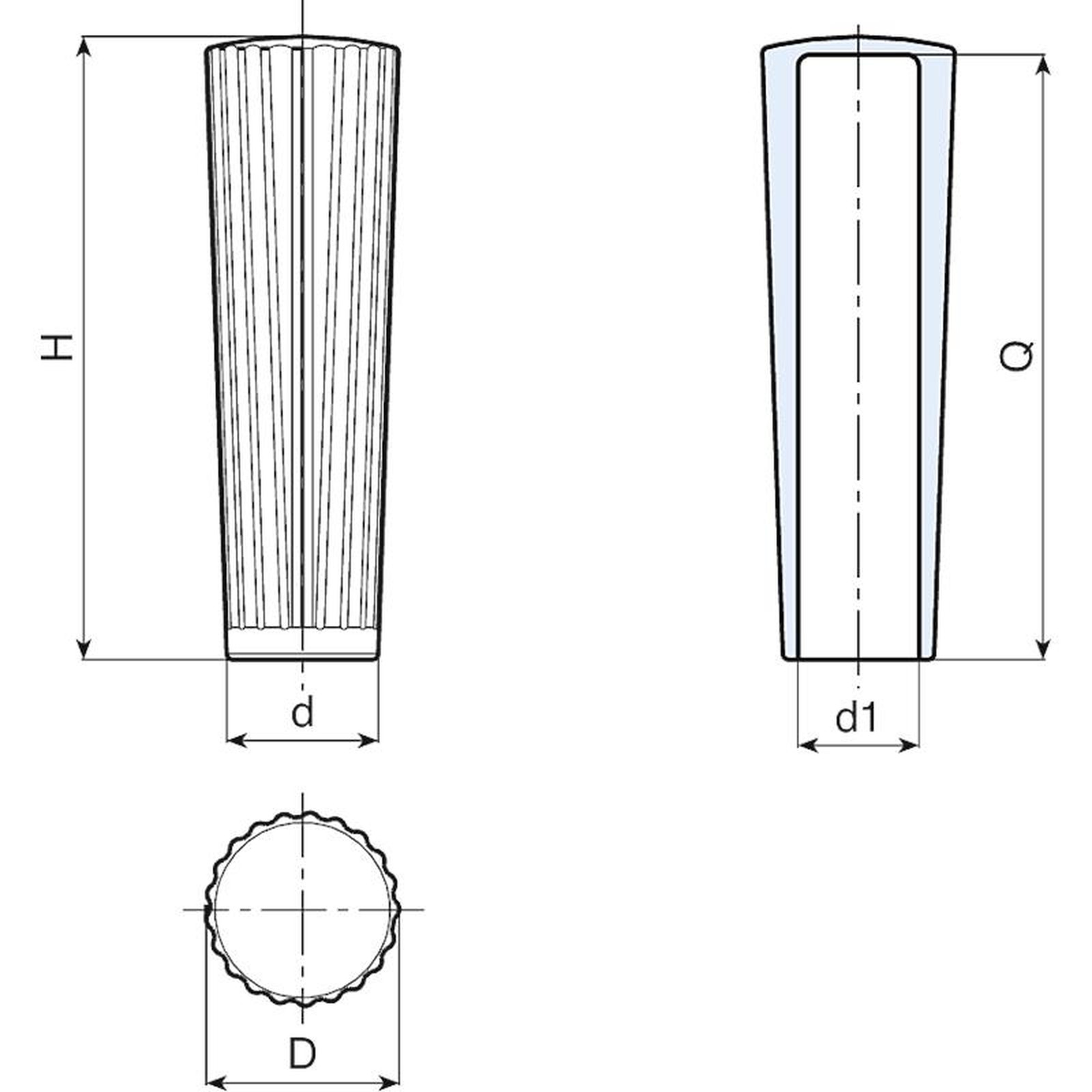 | Code | art. | H | D | d | d1 | Q | Weight (g) |