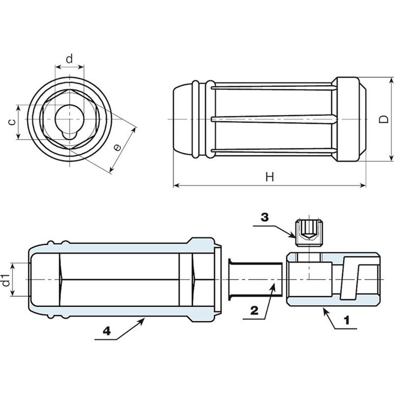 | Code | art. | D | H | d | c | e | d1 | Weight (g) | Amp. Max |