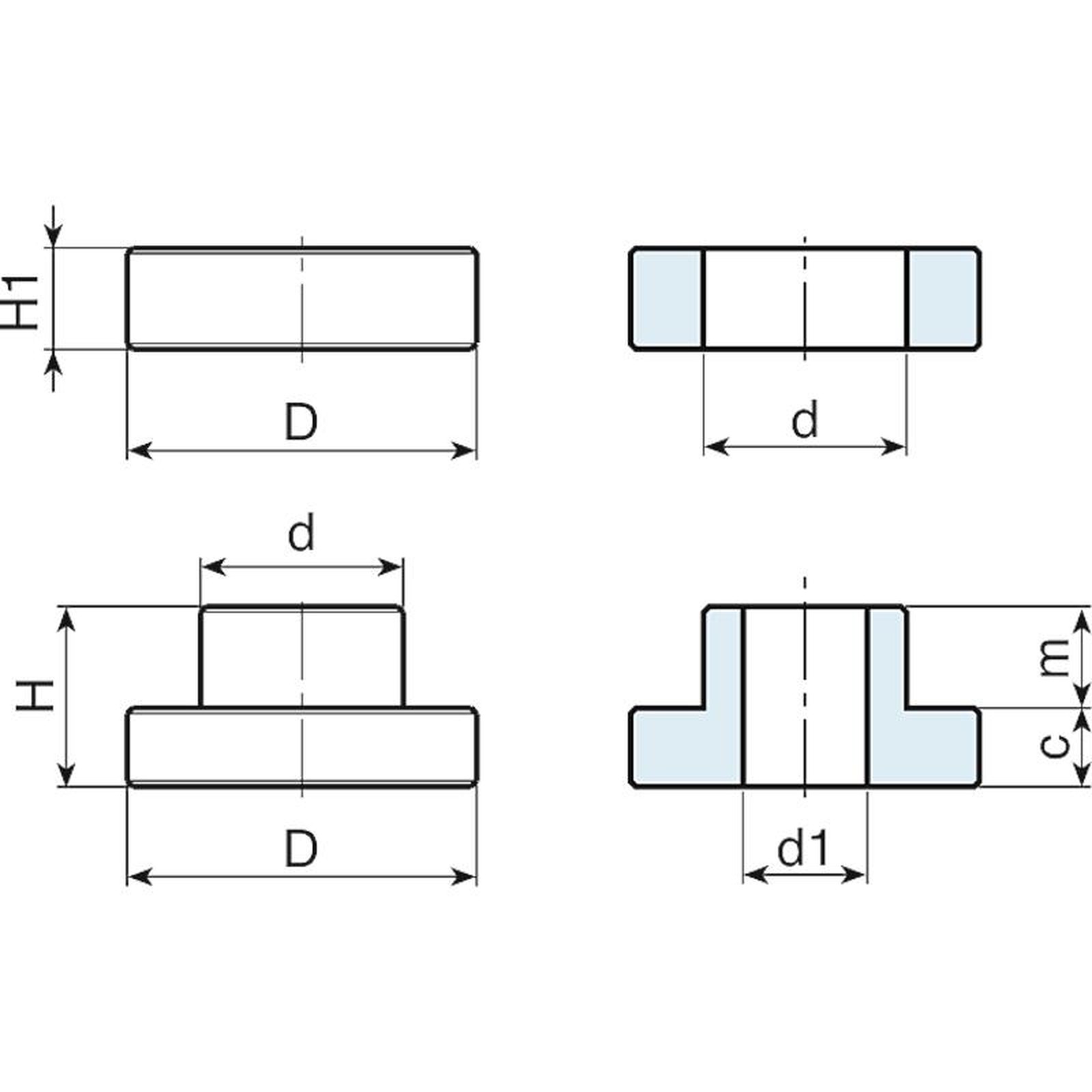 | Code | art. | D | H | d | H1 | m | c | d1 | Weight (g) |
