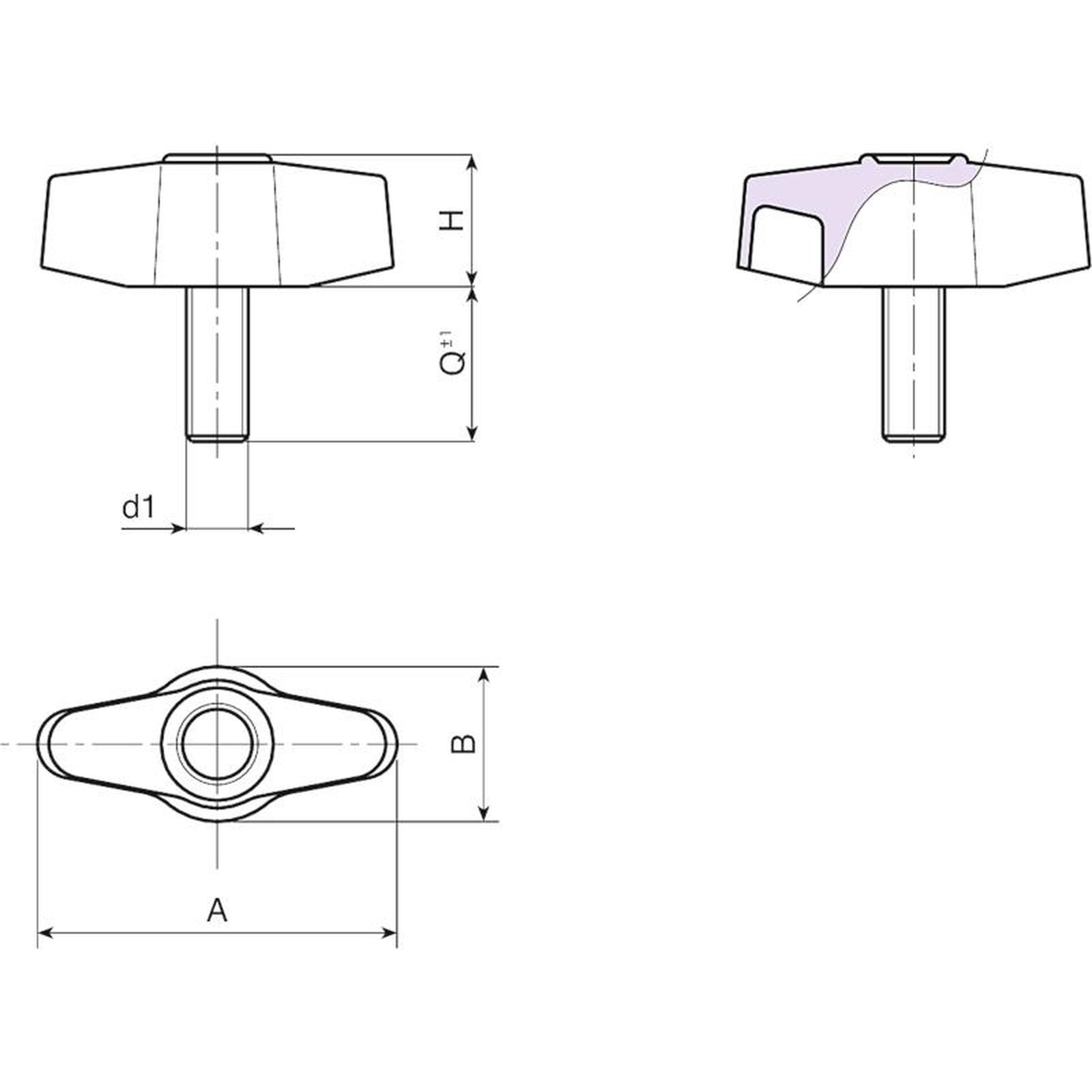 | Code | Art. | A | B | H | LM | d1 6g | Q | Weight (g) |