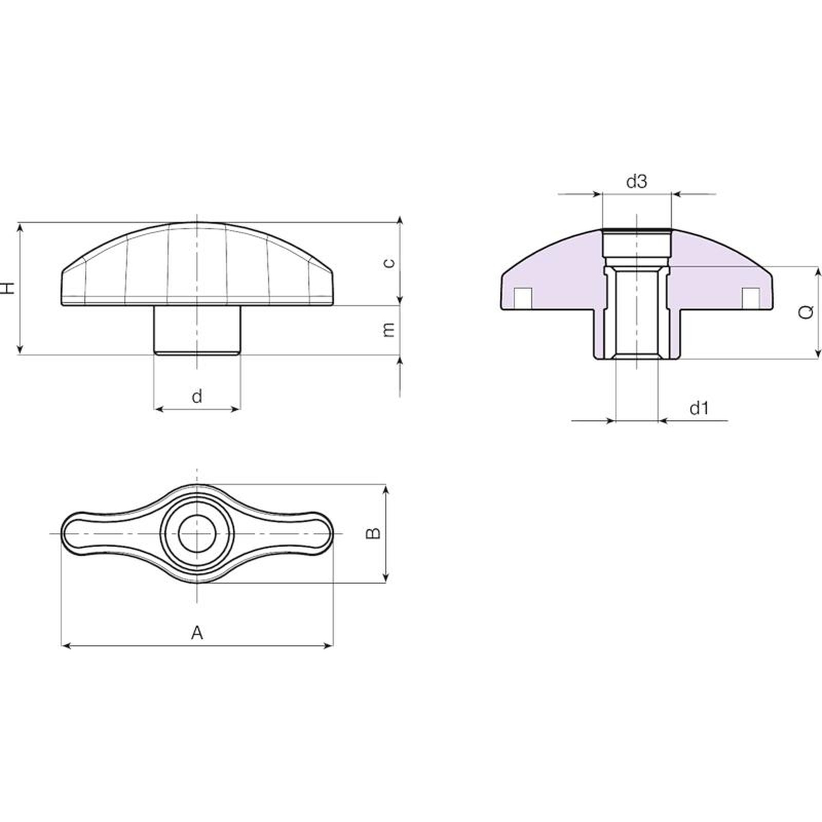 | Code | art. | A | B | H | m | c | d | d3 | d1 H9 | Q | Weight (g) |