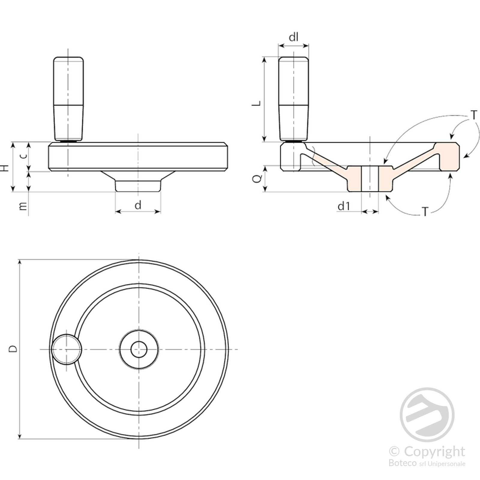 | Código | Art. | d | D | H | m | c | Q | d1 H7 | dl | L | Peso (g) |