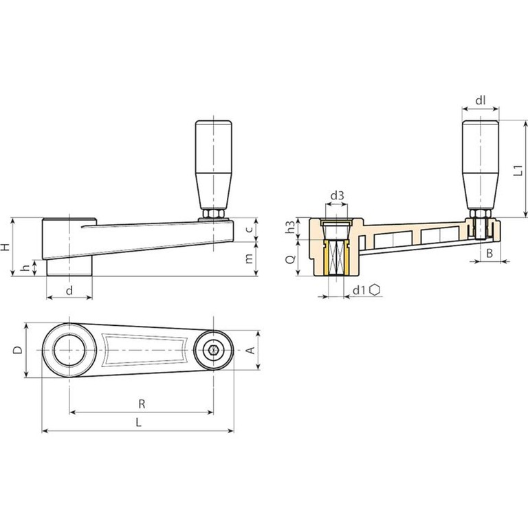 MANIVELA CON ORIFICIO HEXAGONAL Y MANGO GIRATORIO