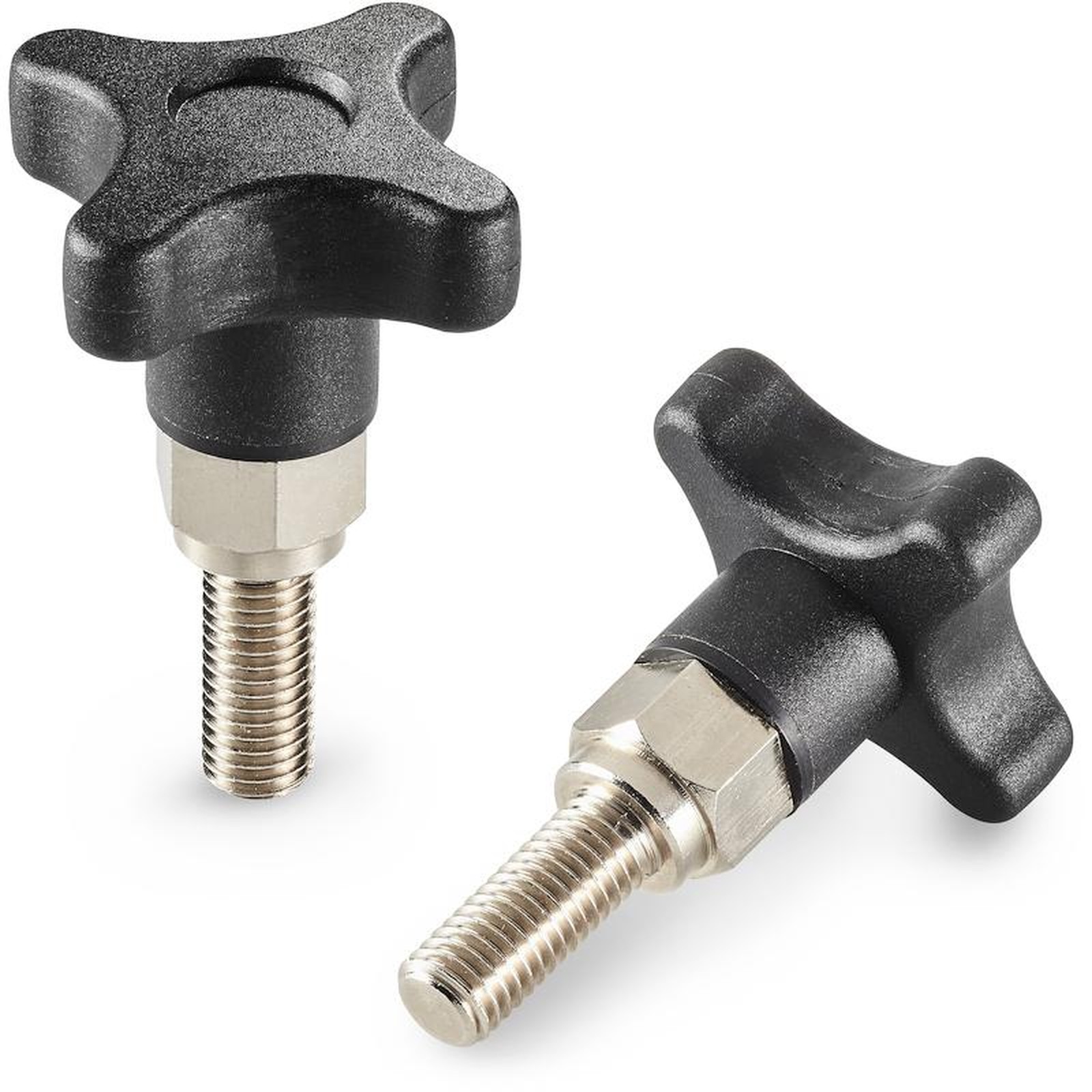 Casquillo con perno roscado de latón niquelado (tolerancia rosca 6g).