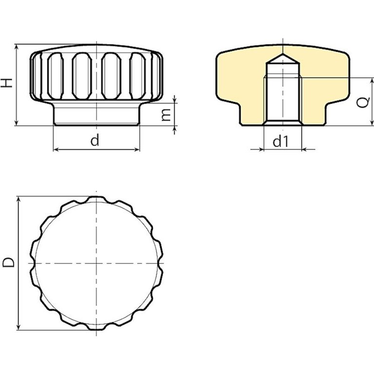 | Código | Art. | D | H | d | m | d1 6H | Q | Peso (g) |