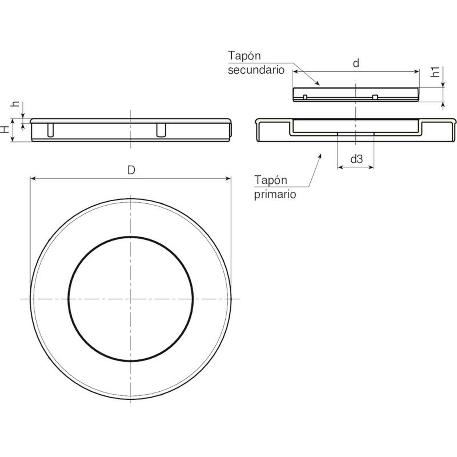 | Código | art. | D | d | d3 | H | h | h1 | Peso (g) |