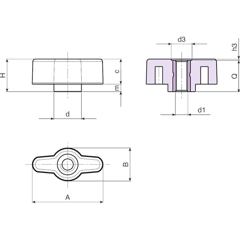 Código | Art. | A | B | H | m | c | d | d3 | h3 | d1 6H | Q | Peso (g) |