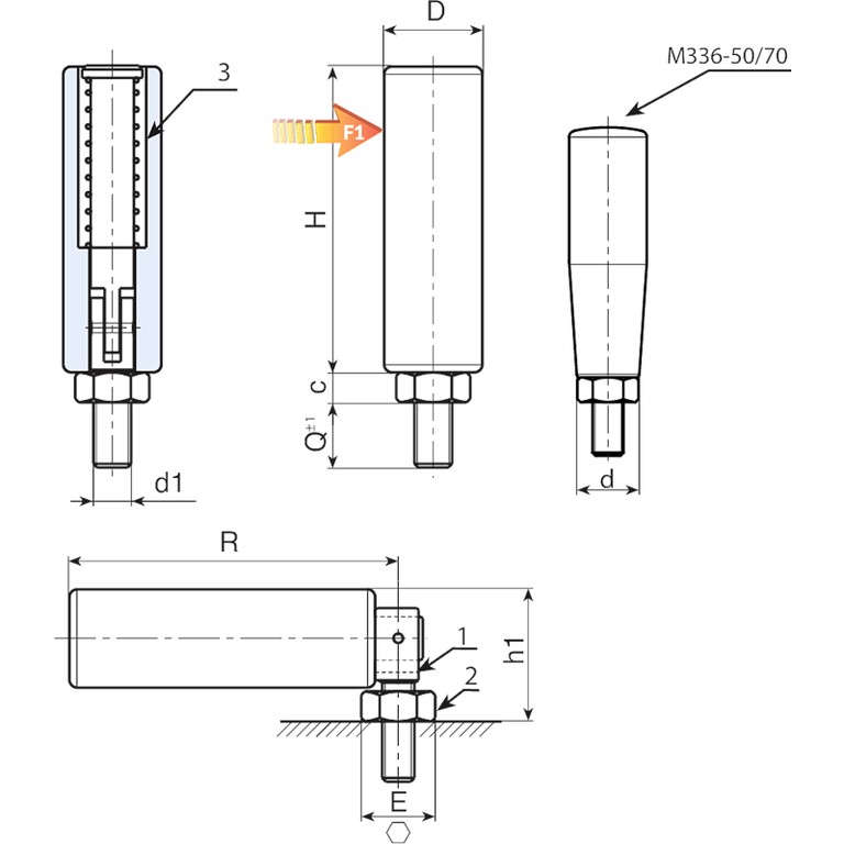 Código | art. | H | D | d | E | R | c | h1 | d1 6g | Q | Peso (g) | F1 (N) |
