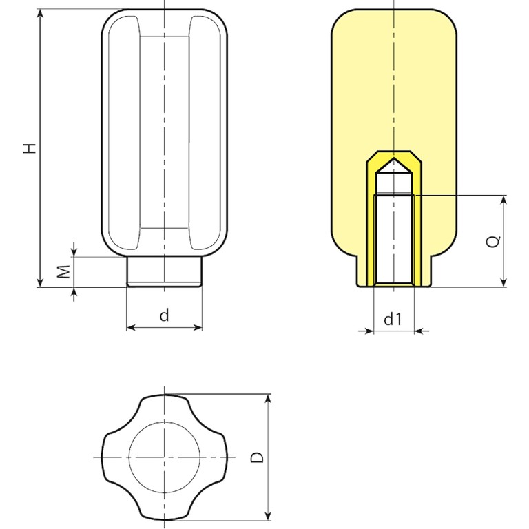 Código | Art. | D | H | M | d | d1 6H | Q | Peso (g) |