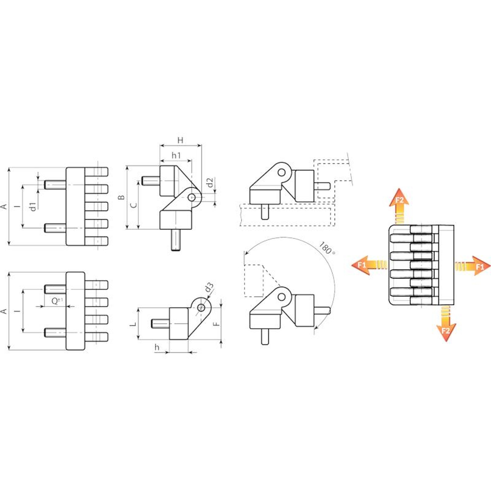 BISAGRA UNIVERSAL MONTAJE PUERTA ANGULAR CON PERNO ROSCADO