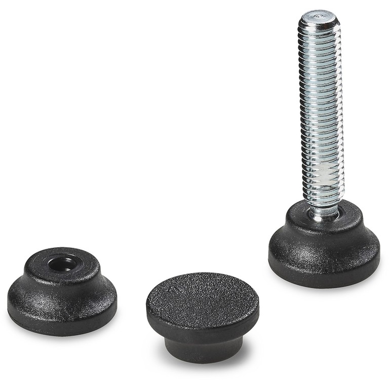 Perno roscado con articulación esférica de acero galvanizado (tolerancia rosca 6g); con fresado para llave de regulación.