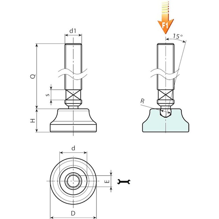 Atención: El límite de carga F1 expresado es inferior a la carga de rotura en un 30 % y se entiende como estático.