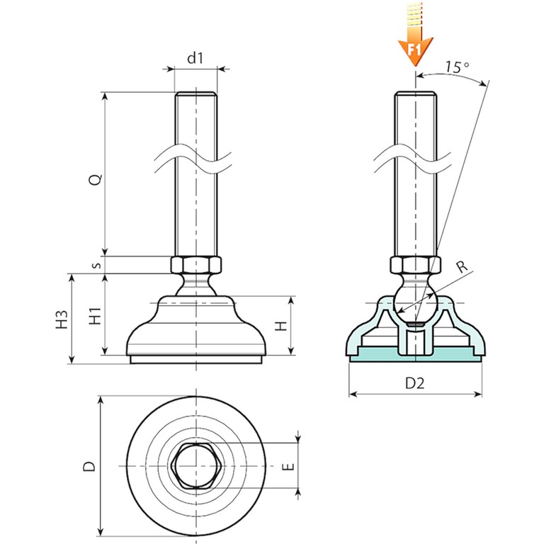 Atención: El límite de carga F1 expresado es inferior a la carga de rotura en un 30 % y se entiende como estático.