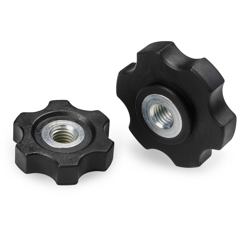 Casquillo con orificio roscado pasante de acero galvanizado (tolerancia rosca 6H).