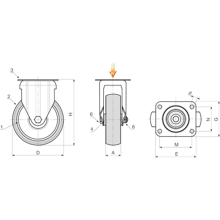 RUEDA DE POLIPROPILENO / GOMA CON HORQUILLA FIJA DE ACERO Y PLACA DE FIJACIÓN