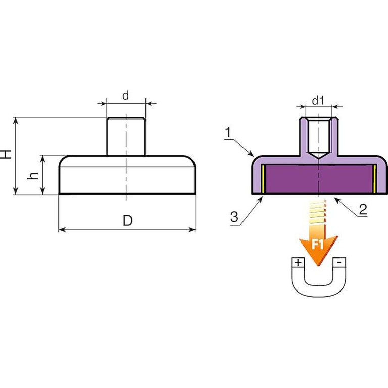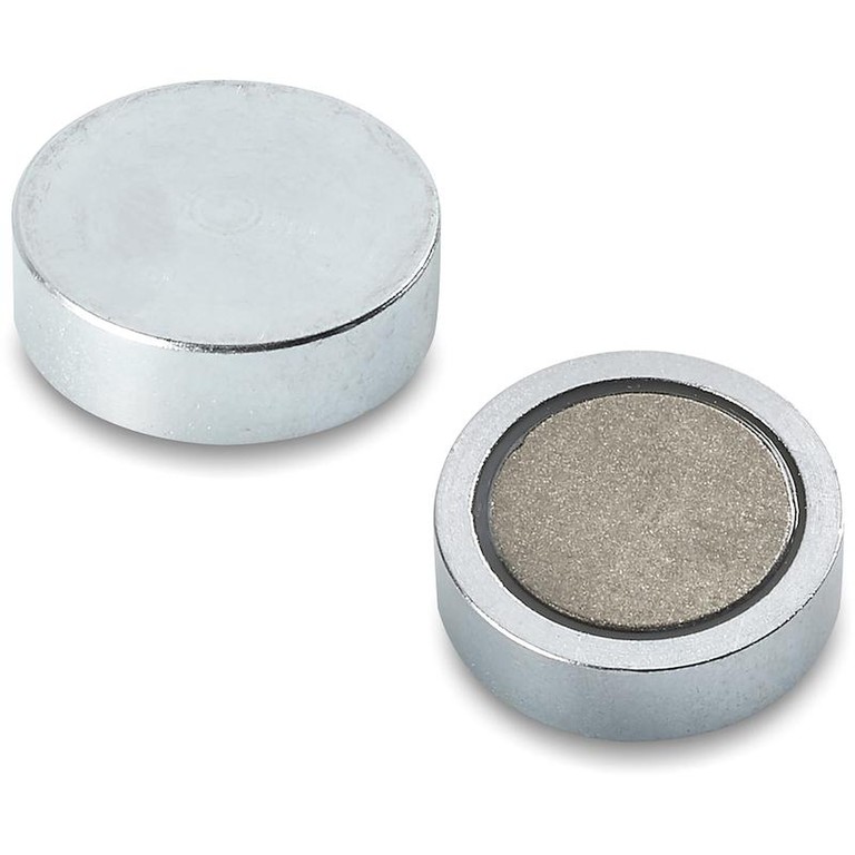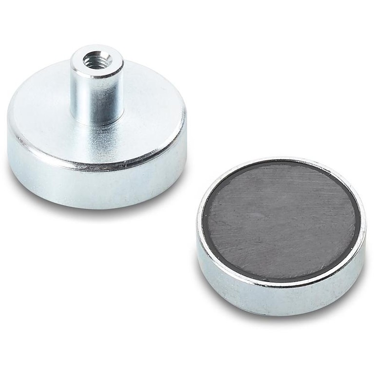 IMÁN DE SAMARIO-COBALTO REDONDO CON CUBIERTA DE ACERO GALVANIZADO Y ORIFICIO ROSCADO SALIENTE