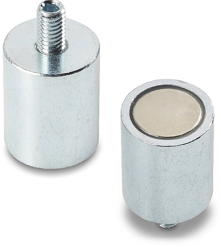 IMÁN DE NEODIMIO CILÍNDRICO CON CUBIERTA DE ACERO GALVANIZADO CON PERNO ROSCADO