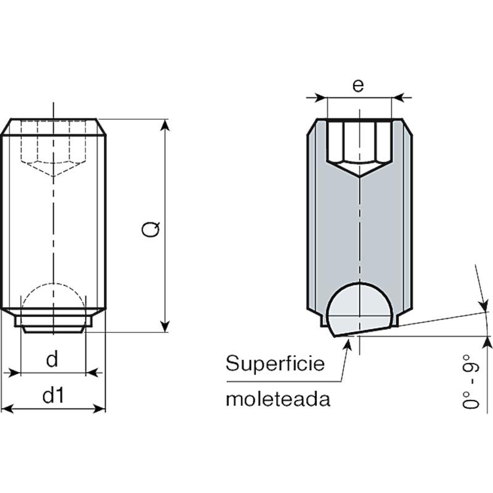 TORNILLO SIN CABEZA ROSCADO DE ACERO CON RANURA HEXAGONAL Y PUNTA ESFÉRICA APLANADA Y MOLETEADA