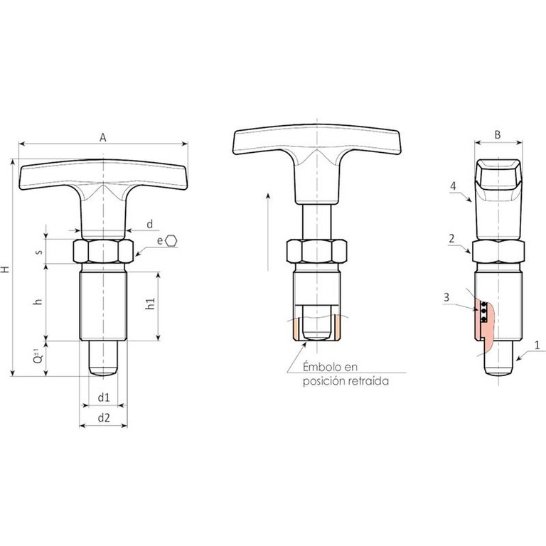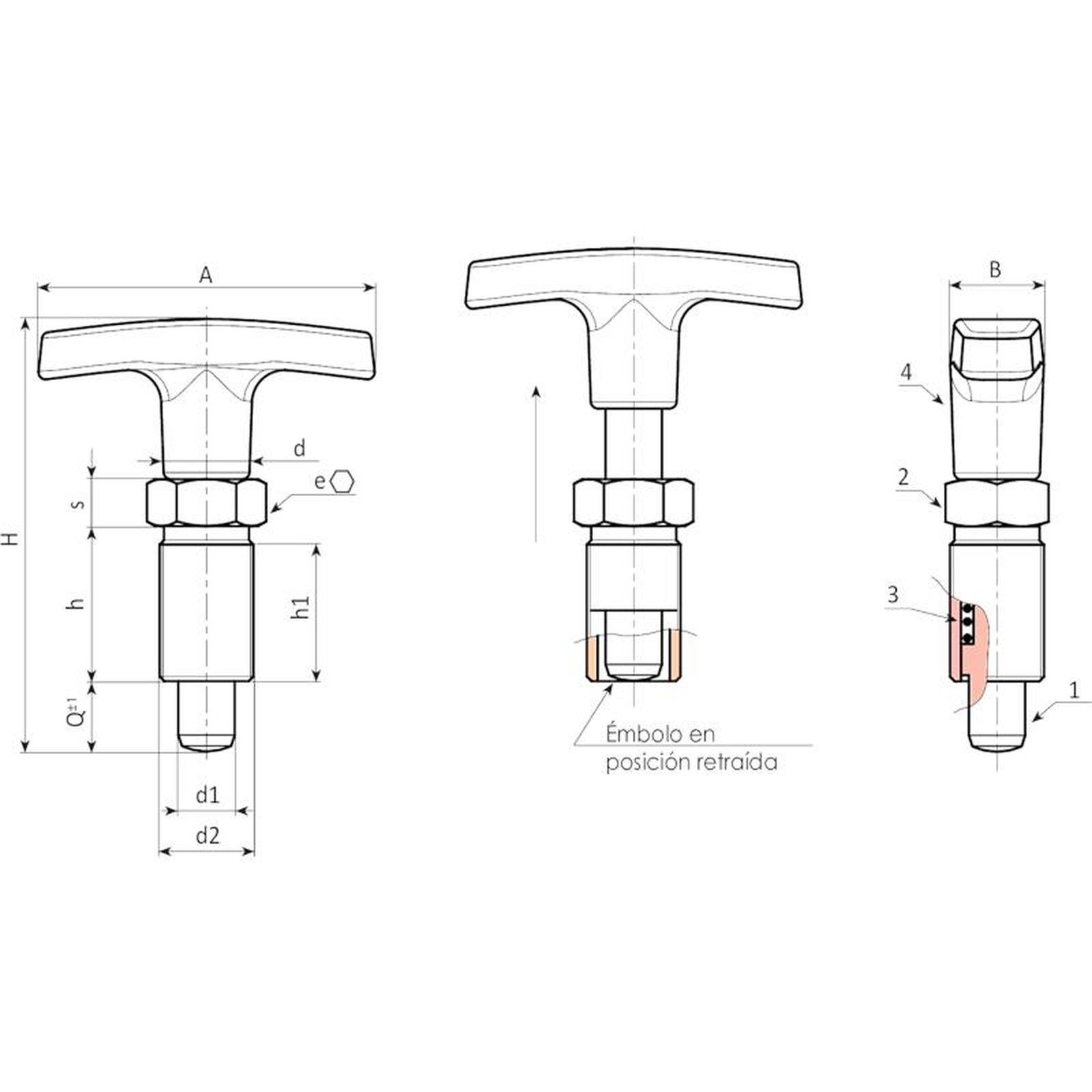 MANGO EN T CON ÉMBOLO DE INDEXACIÓN ROSCADO DE ACERO