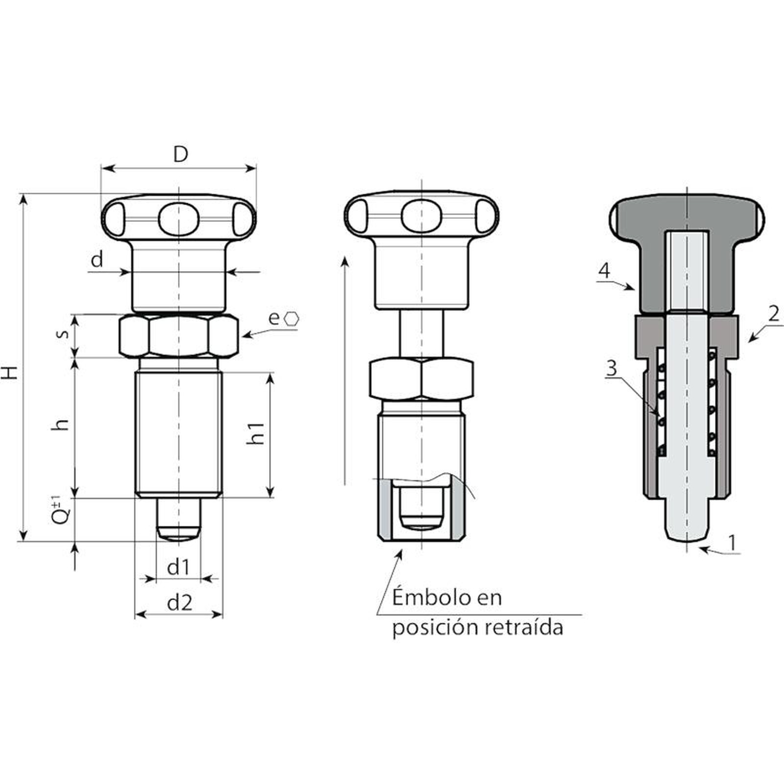 (1) Perno émbolo de indexación de acero inoxidable (AISI 303).