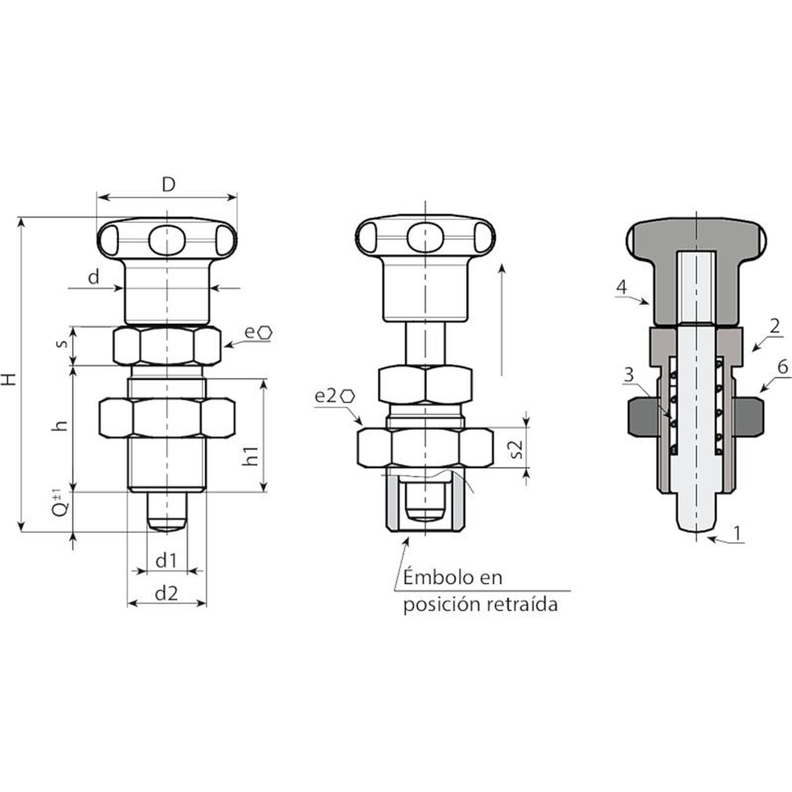 (1) Perno émbolo de indexación de acero inoxidable (AISI 303).
