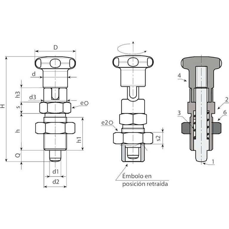(1) Perno émbolo de indexación de acero inoxidable (AISI 303).