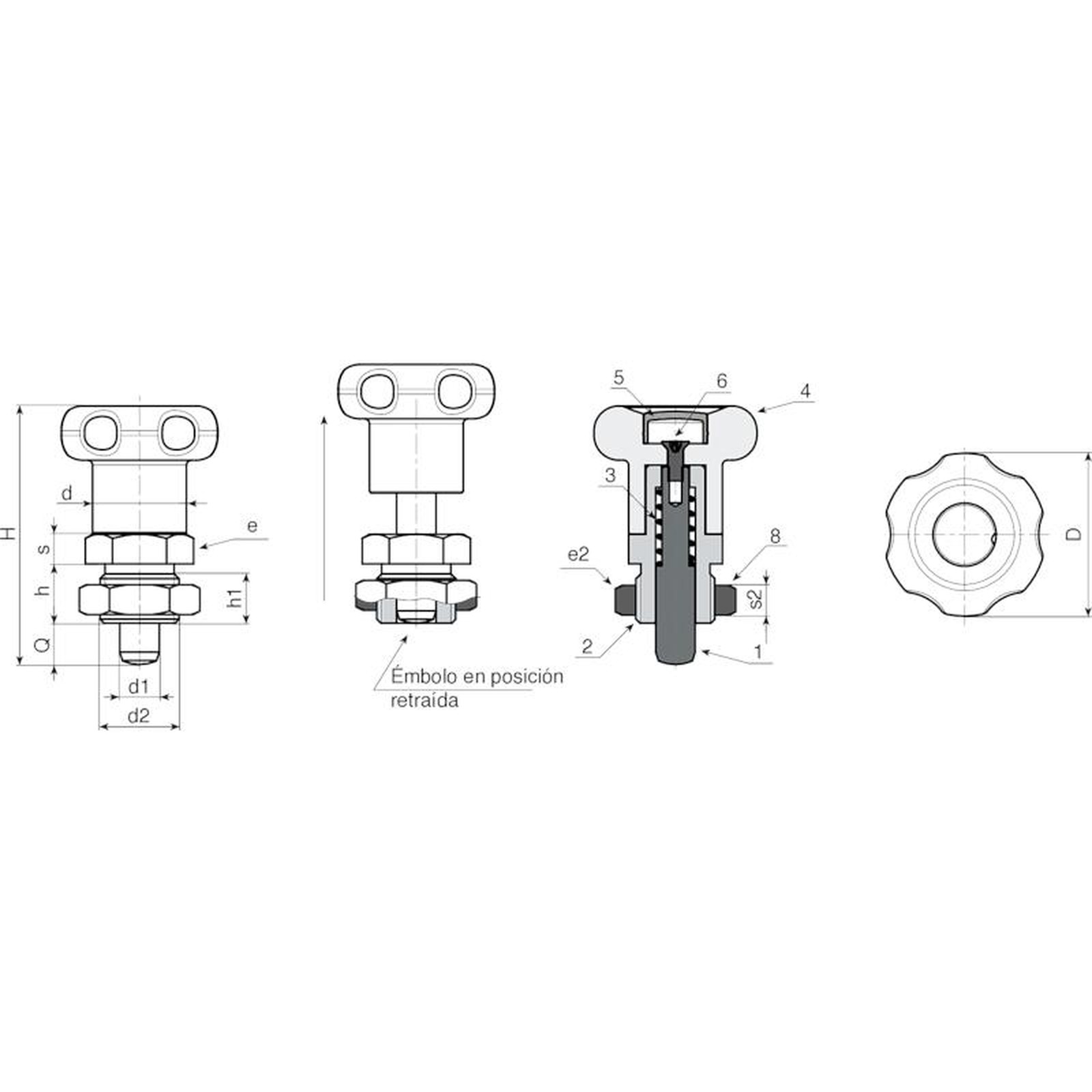 (1) Perno émbolo de indexación de acero inoxidable (AISI 303).